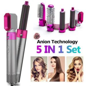5-in-1 Professional Hair Dryer, Straightener, Curler, Tong, Comb, Hot Air Brush Styler, Volumizer, One-Step Automatic Shaper Set Original High-Quality Electric Blow Dryer Comb Hair Curling